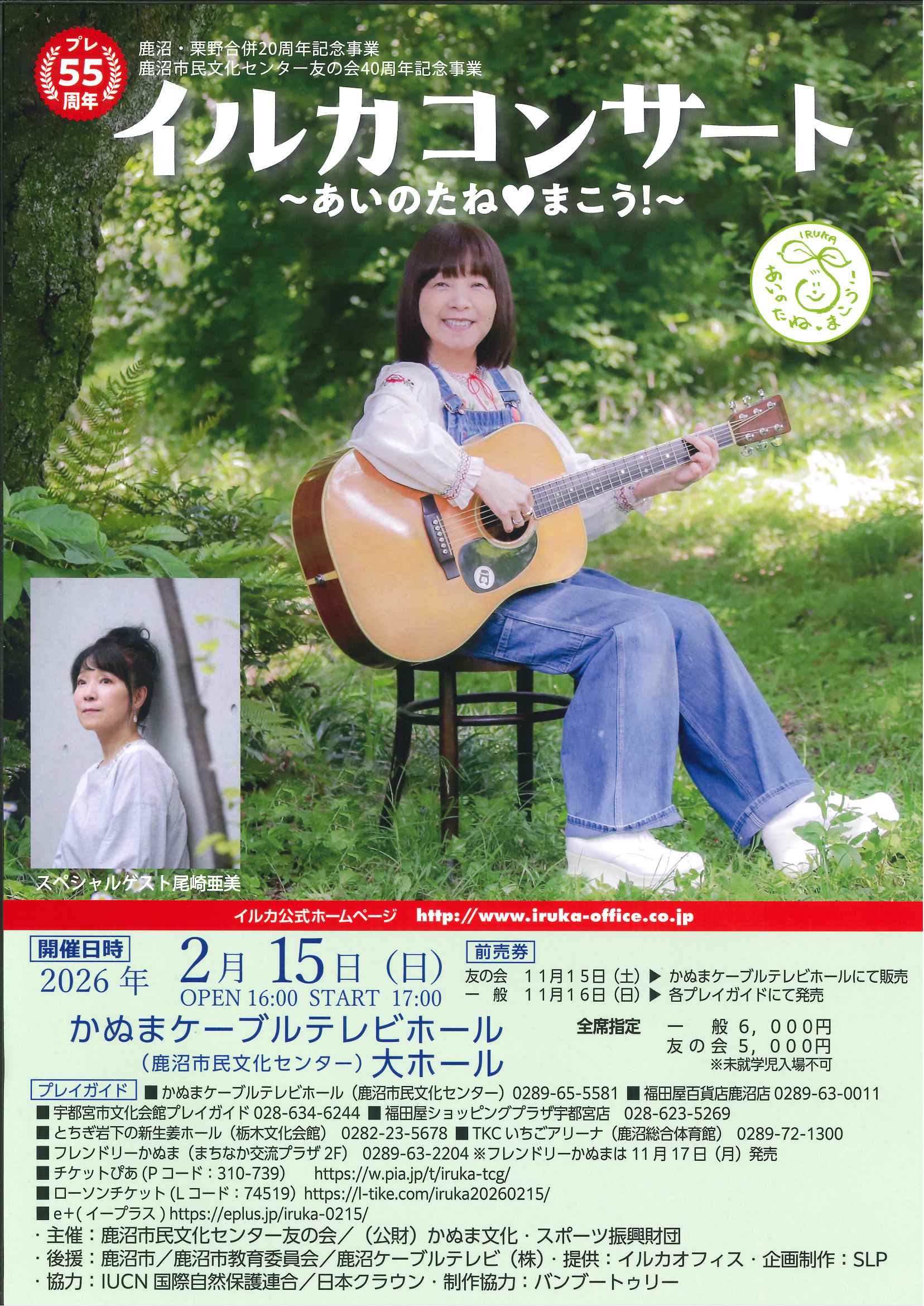 | click | 鹿沼・粟野合併20周年記念事業 鹿沼市民文化センター友の会40周年記念事業 プレ55周年イルカコンサート ~あいのたね♡まこう!~ |