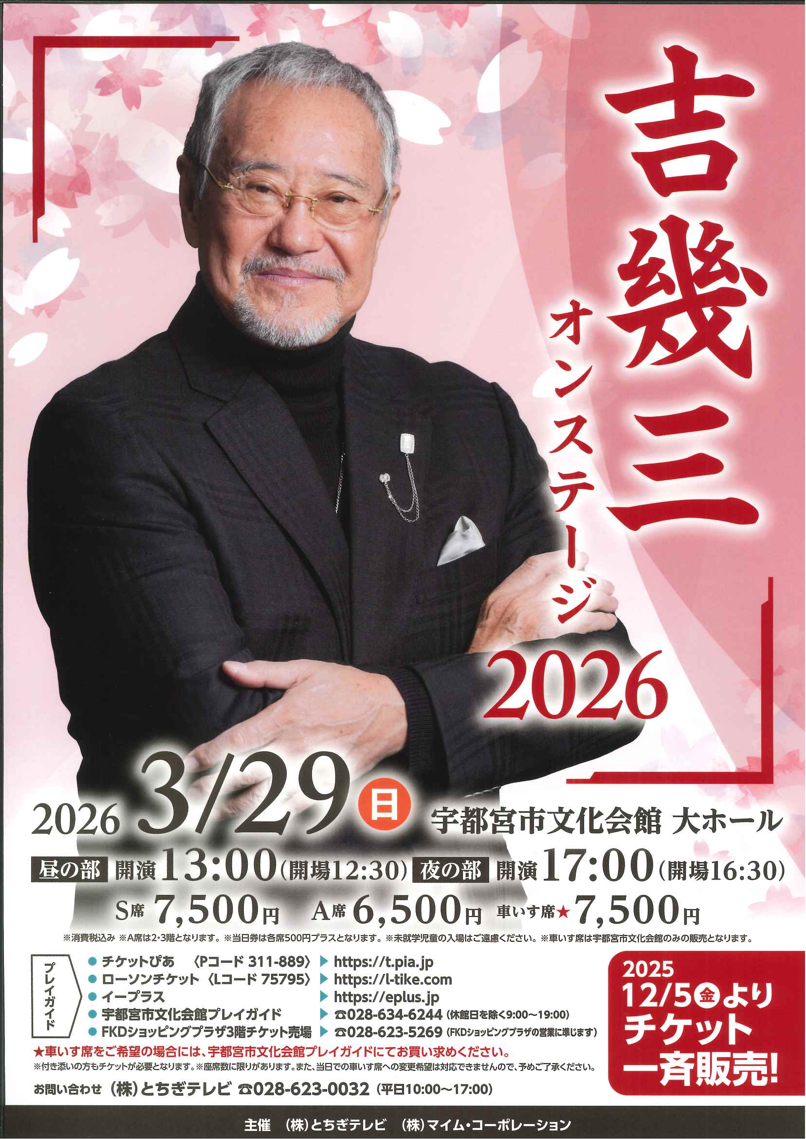 12/7(日) | 17:00 | 大ホール | 会館取扱終了 | 指定 S席 9,800 A席 8,500 SS席 13,500 |